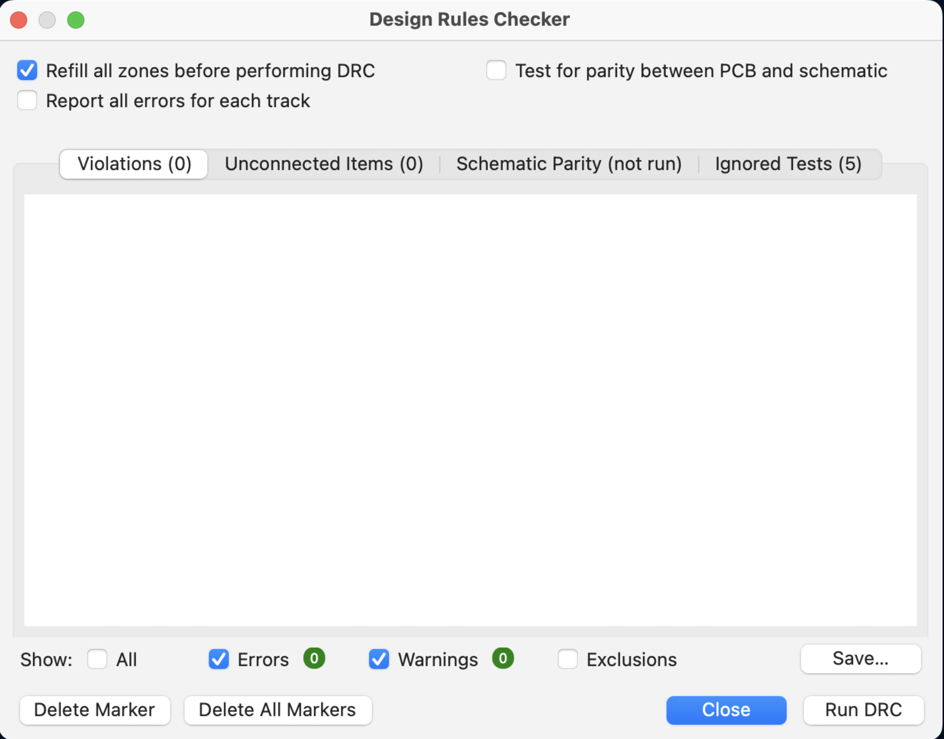 I also got zero errors and zero warnings on the DRC: