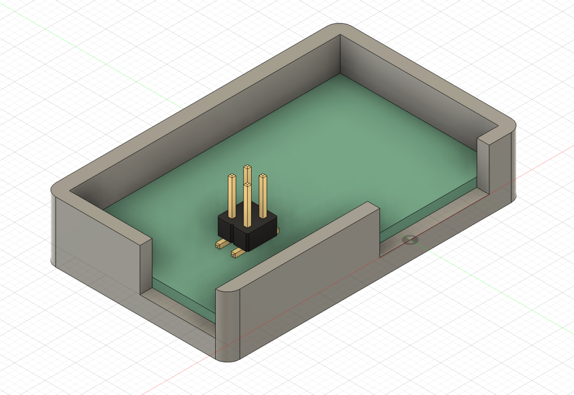 The two gaps in the wall are for the horizontal pin headings and the usb of the microcontroller.