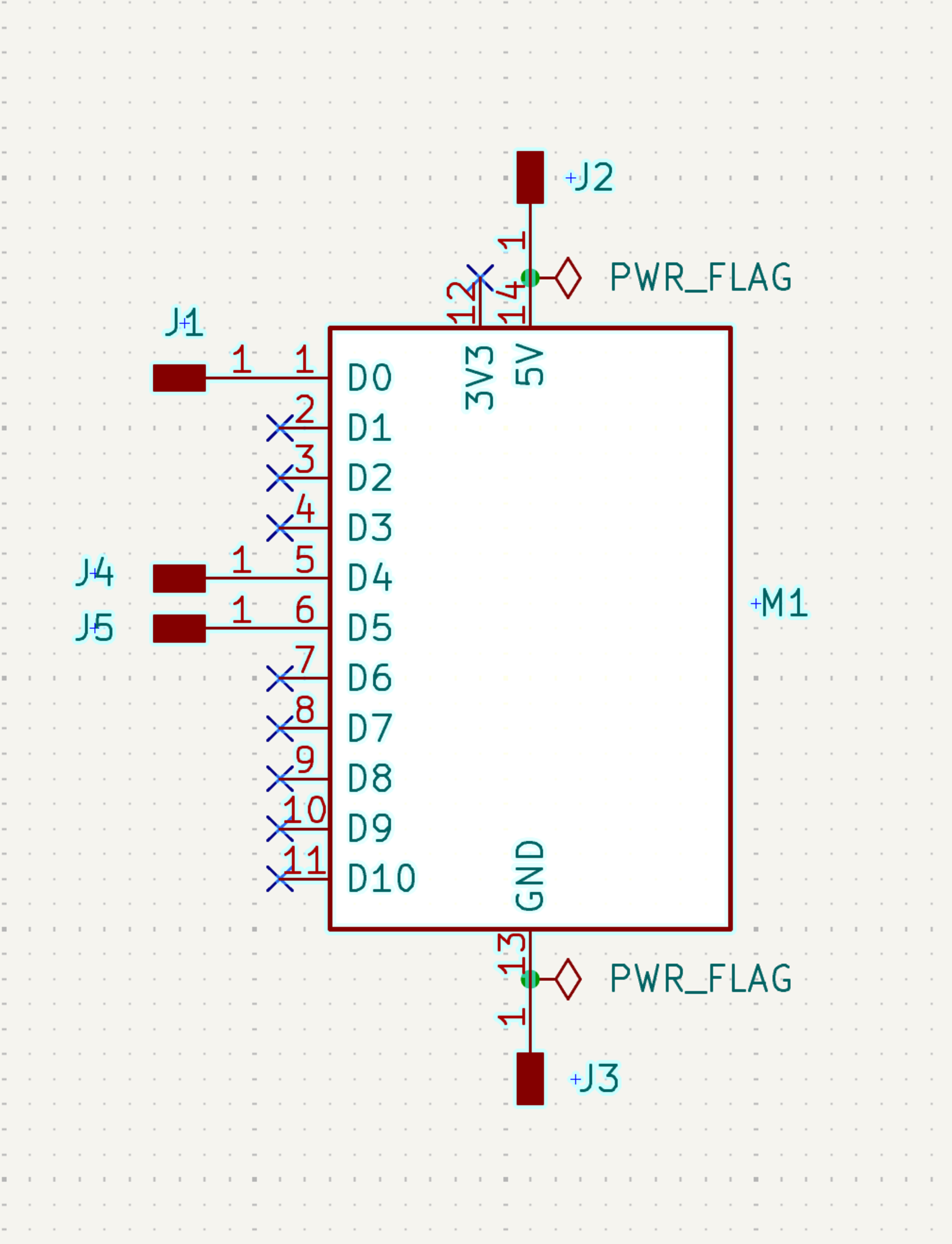 And now by combining the pin headers I finished my schematic that got zero errors and zero warnings on the ERC. You can see the schematic below: