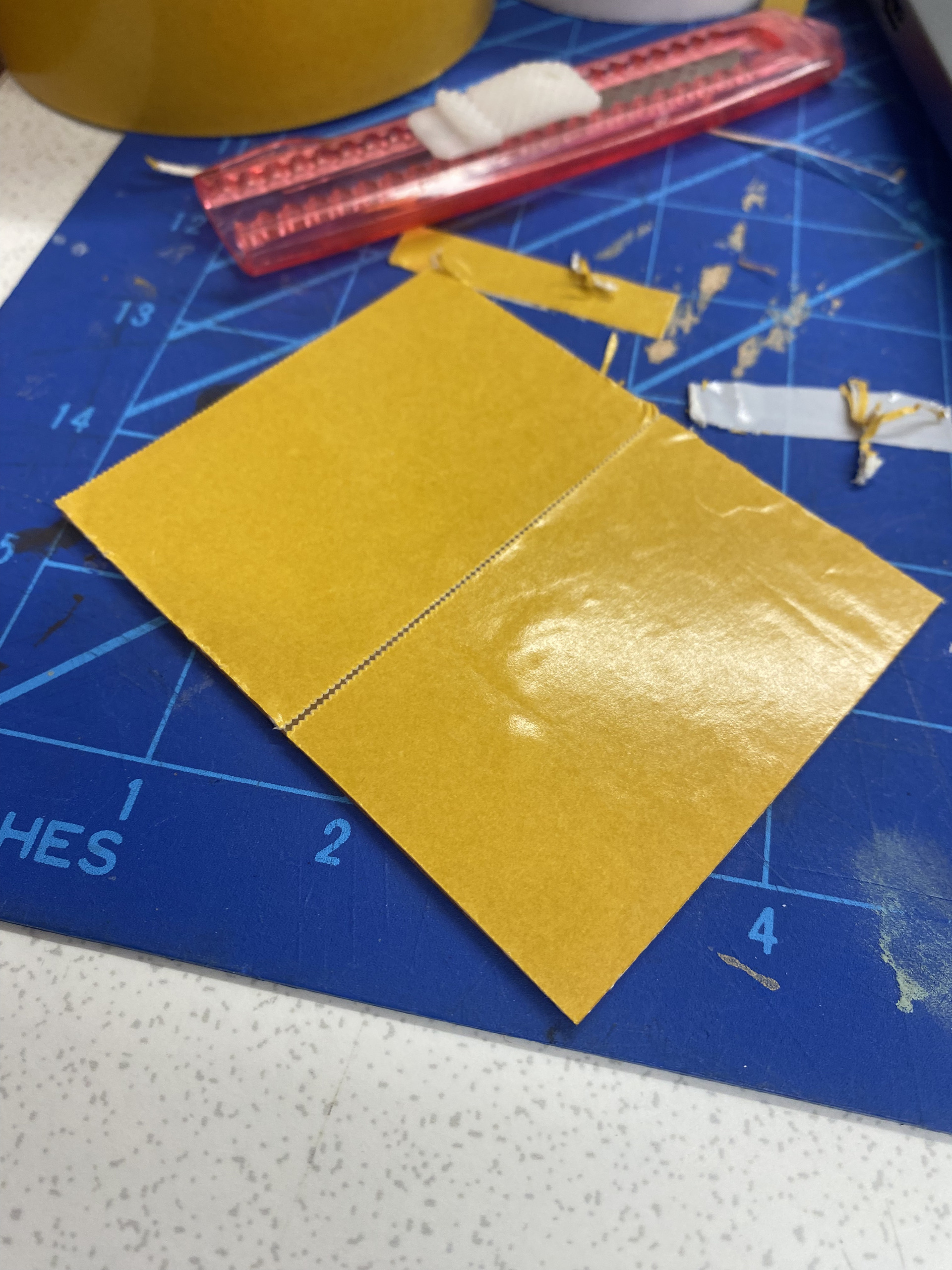 For the milling part we start with taping the copper clad with double sided tape: