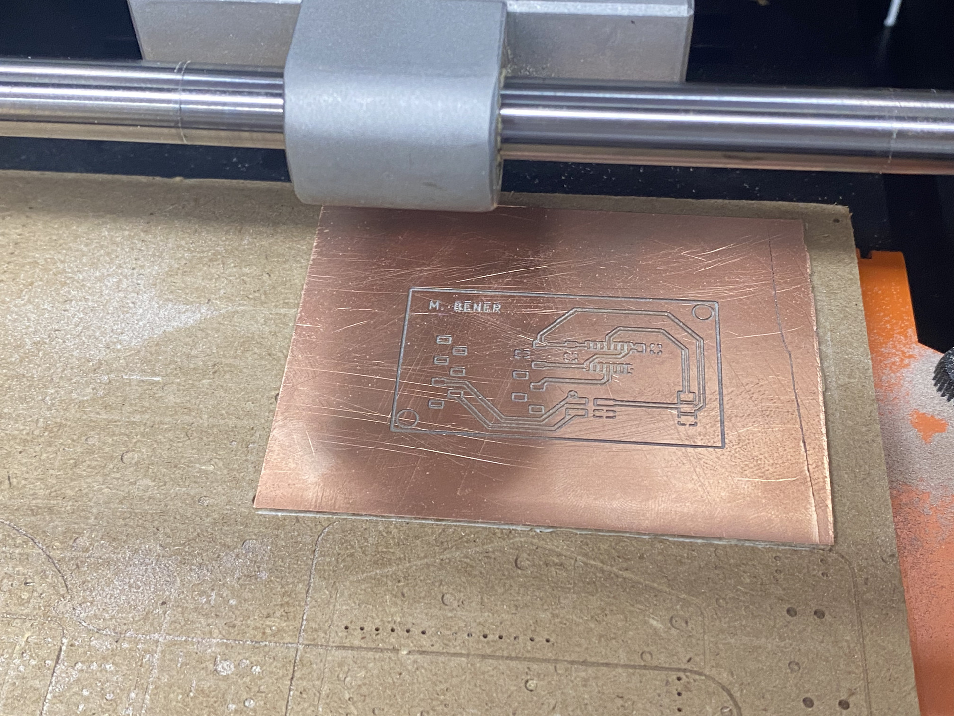 Then we tape the copper clad inside our machine as seen below: